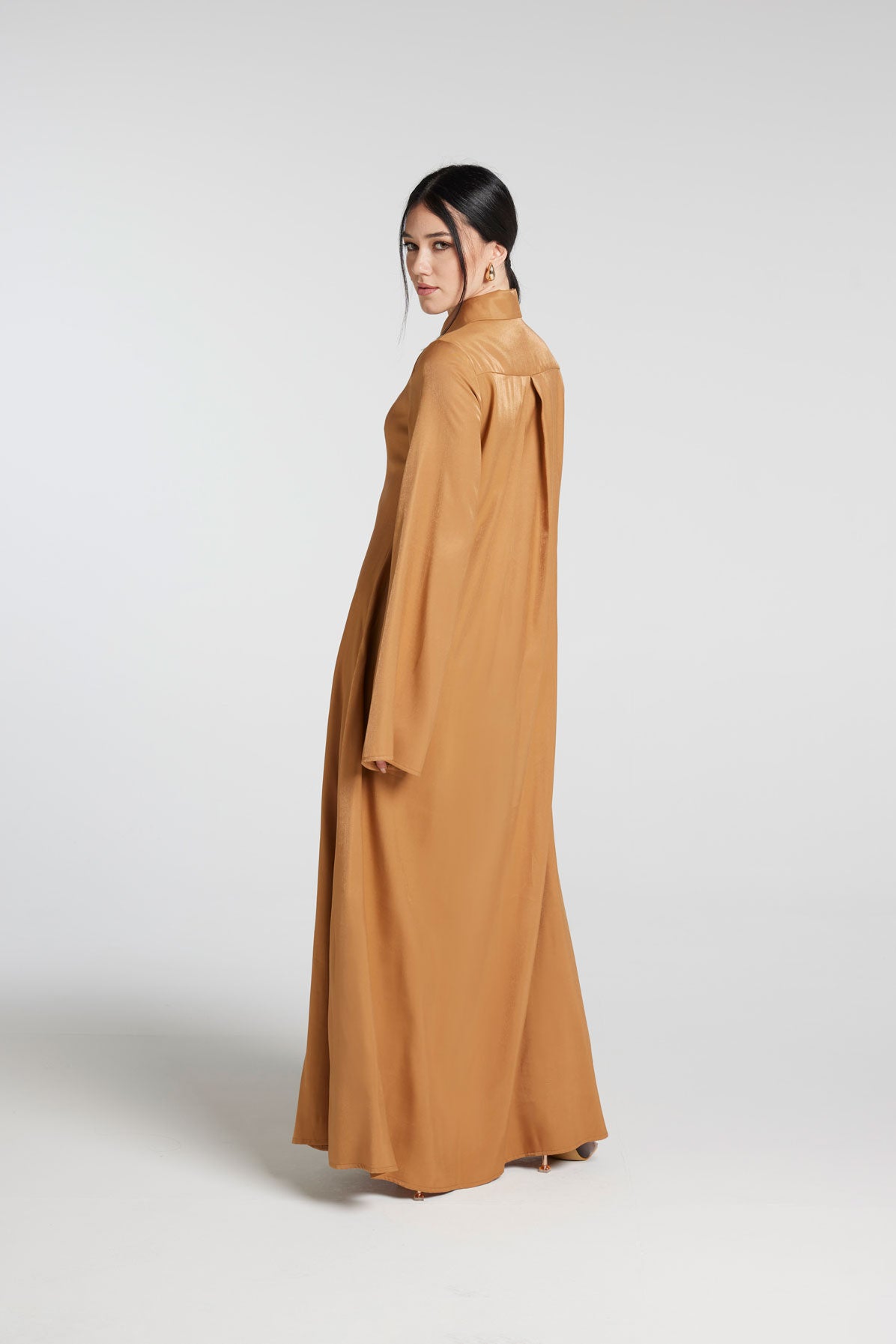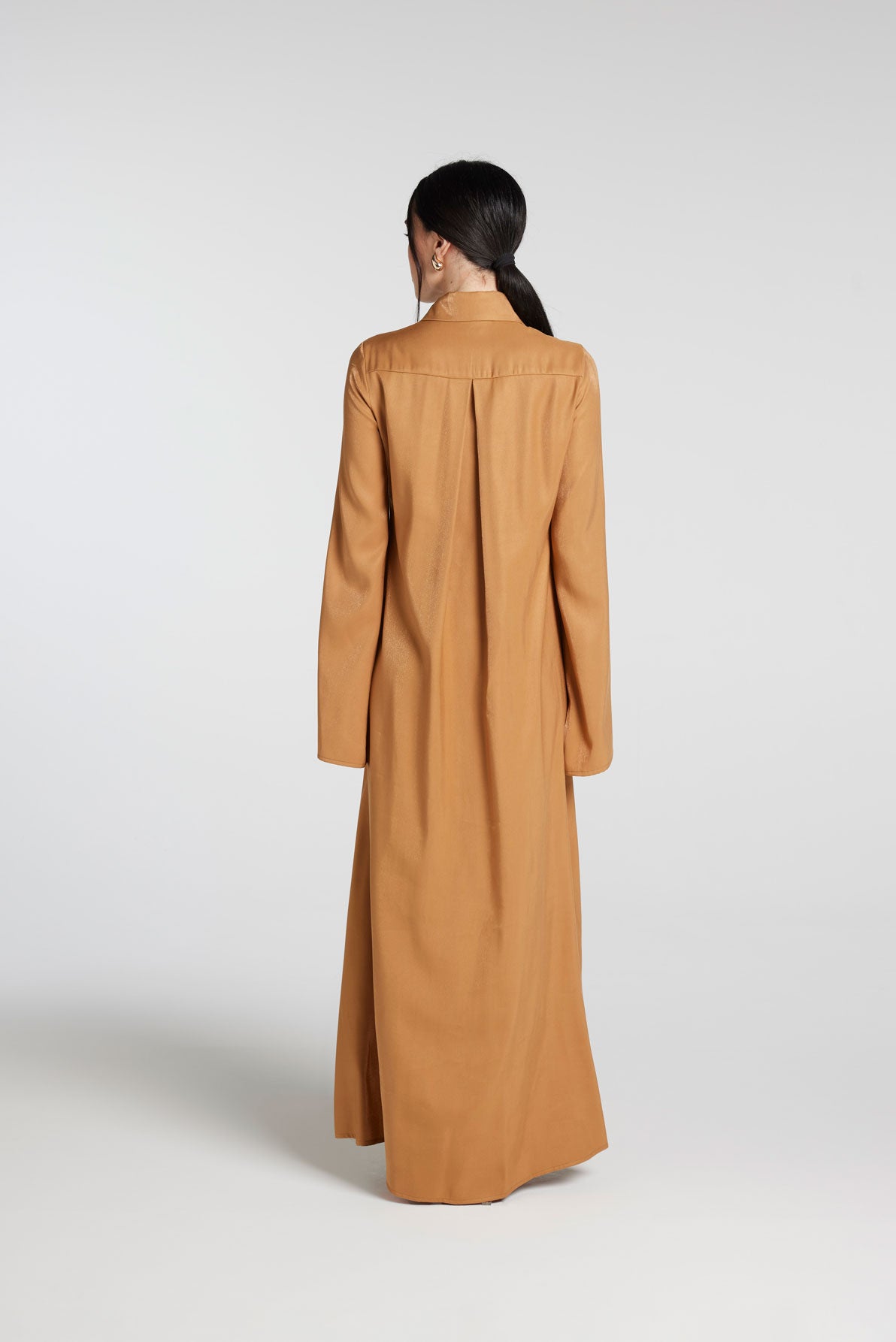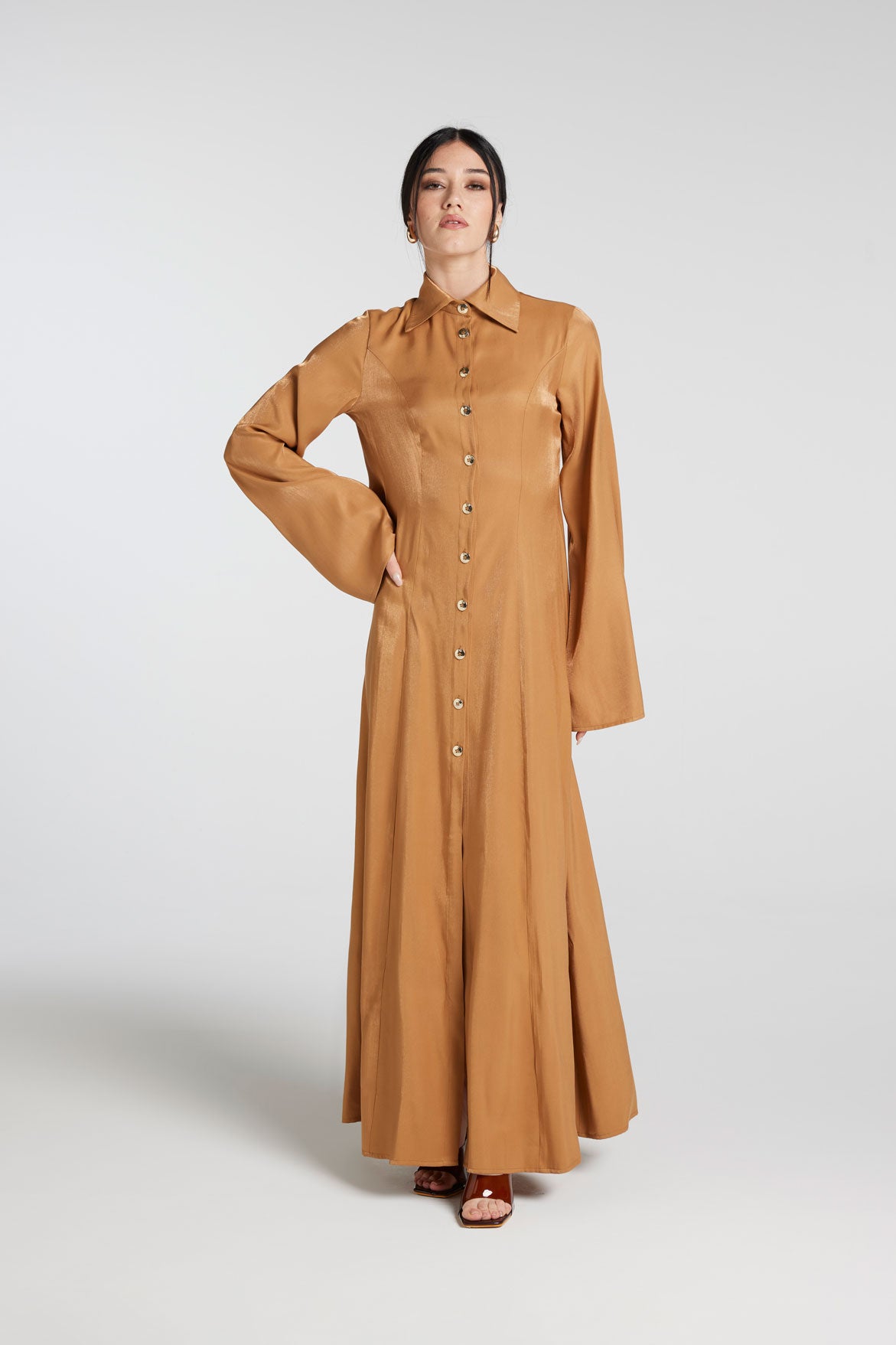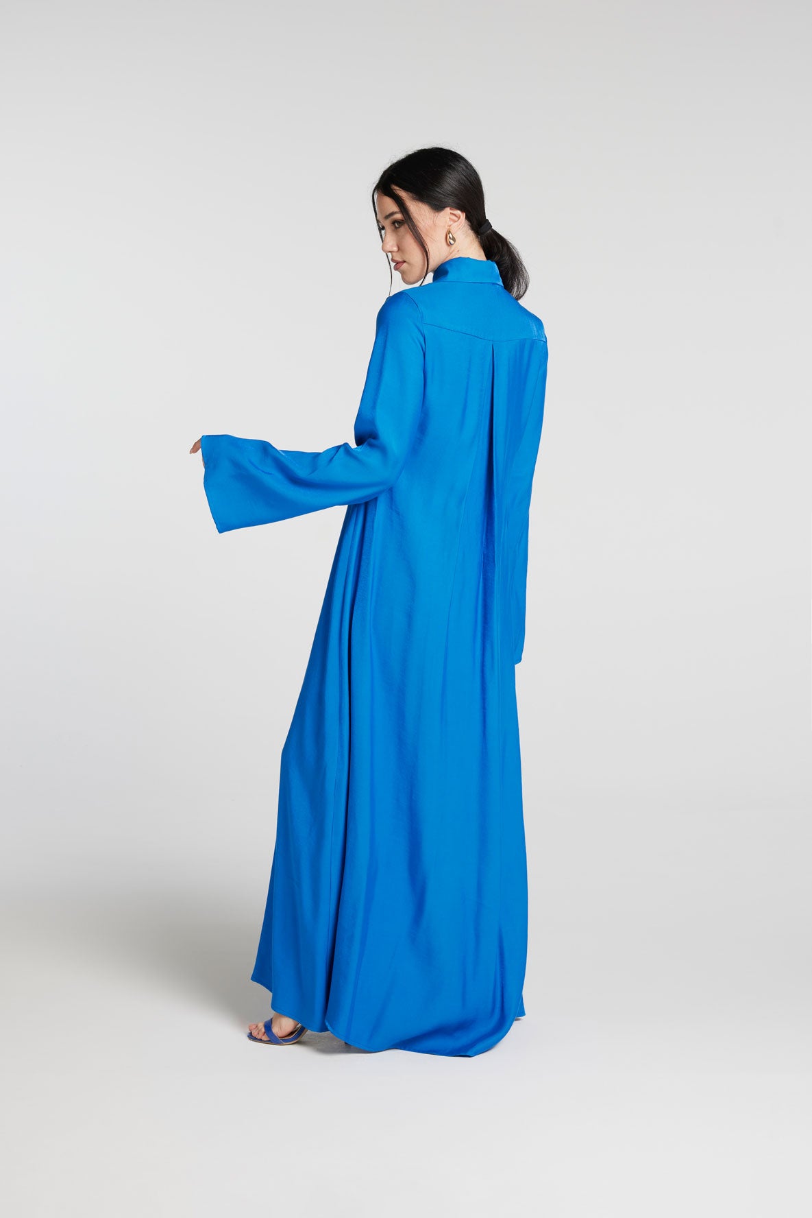 Chemisier molto lungo vestibilità leggermente Over con abbottonatura funzionale con bottoni. Manica a Campana “super lunga”.