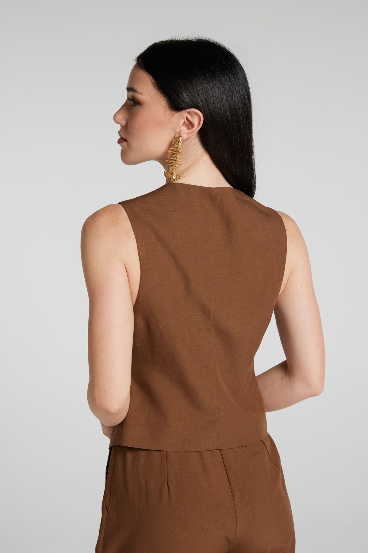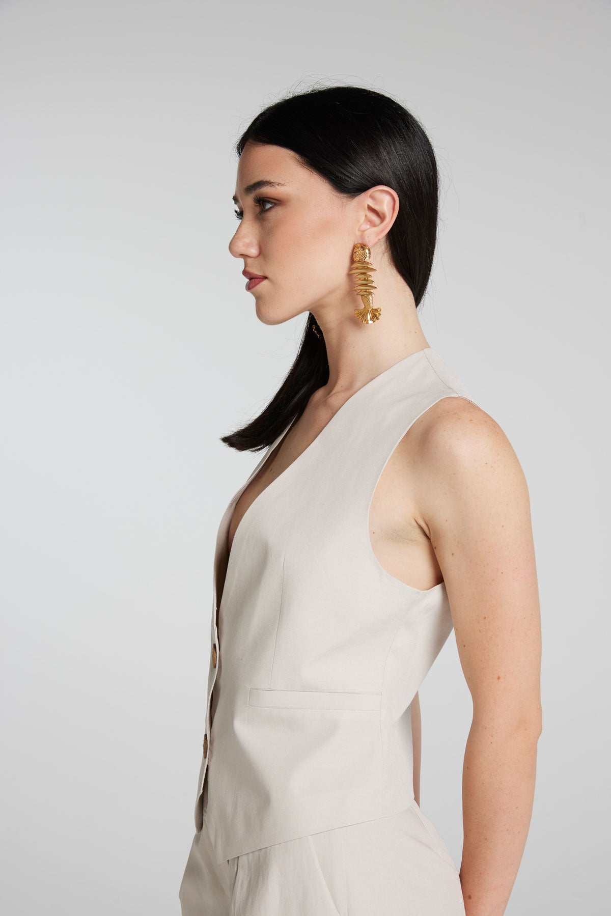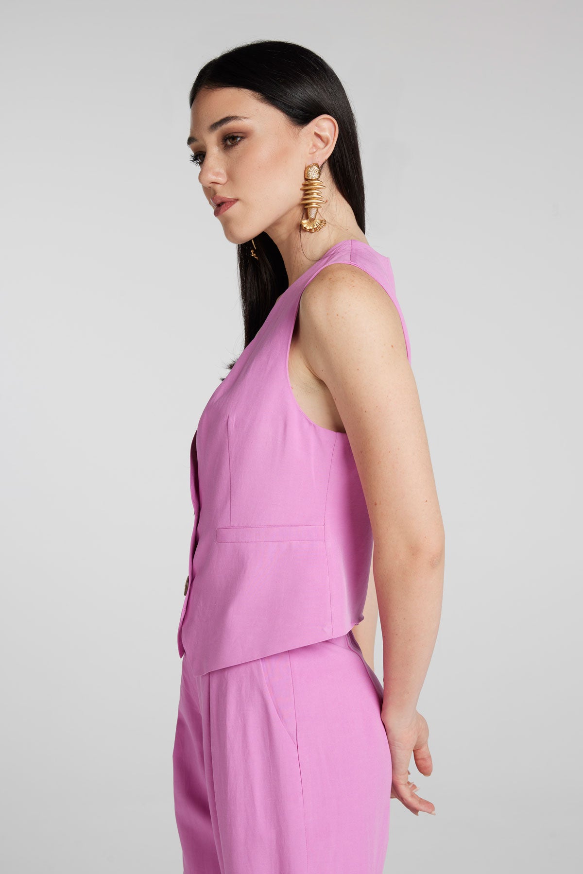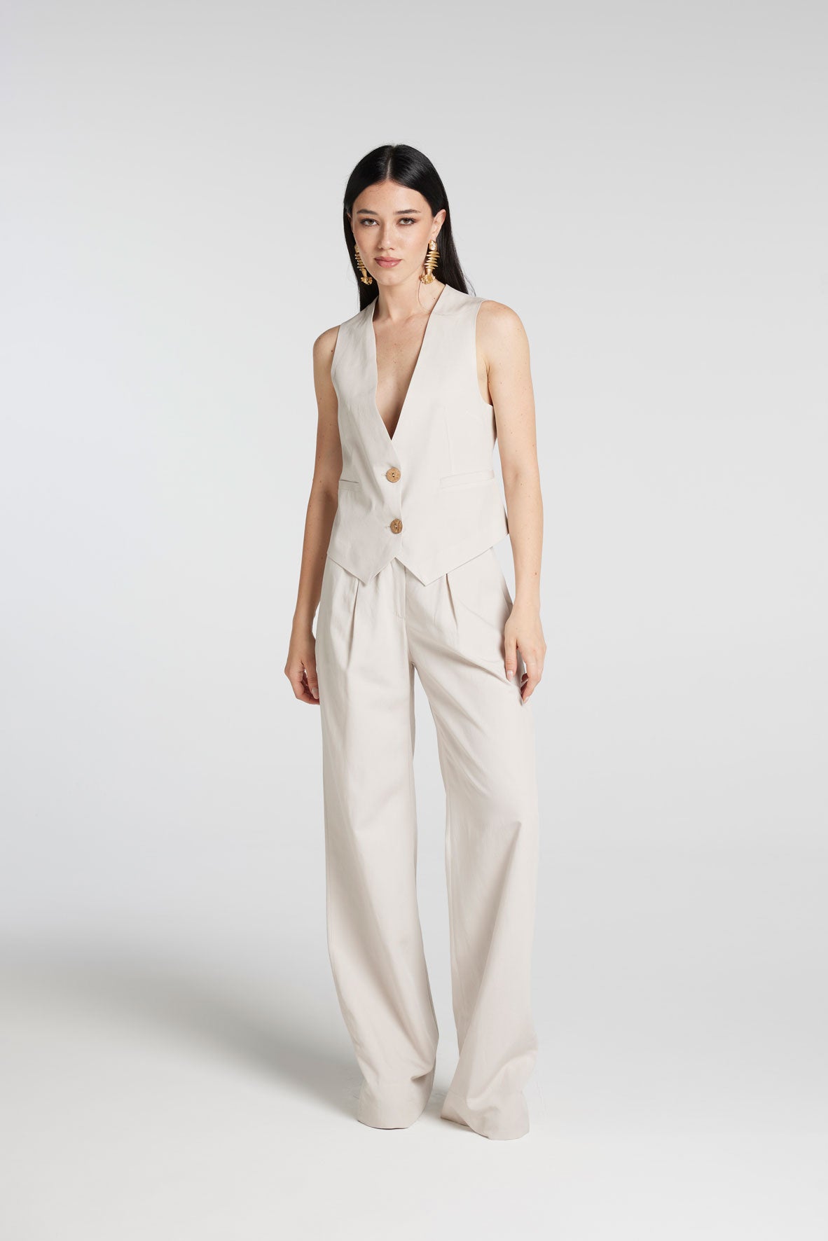 Gilet in Misto Lino (Viscosa/Lino) con bottoni in guscio di Noce di Cocco Naturale.