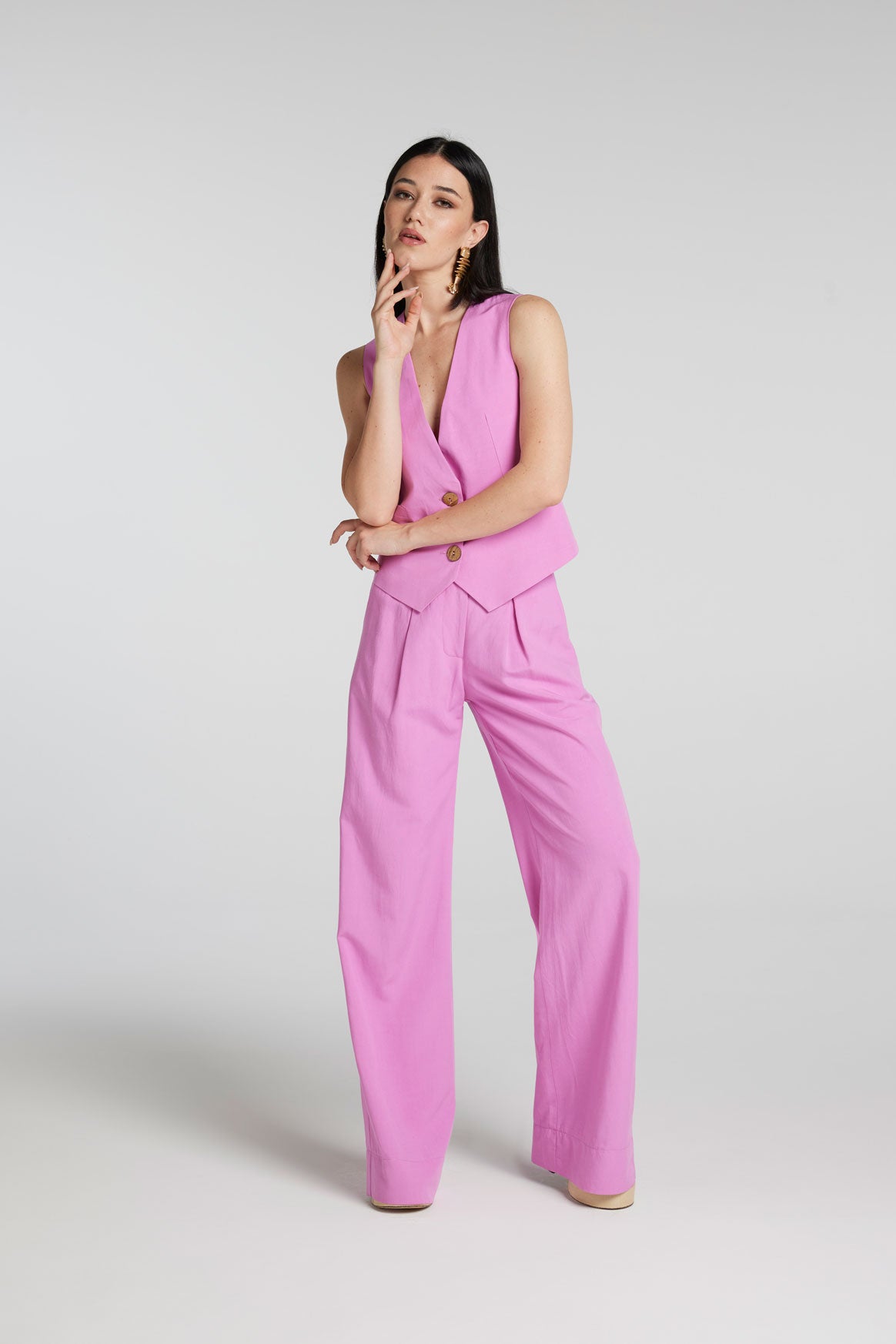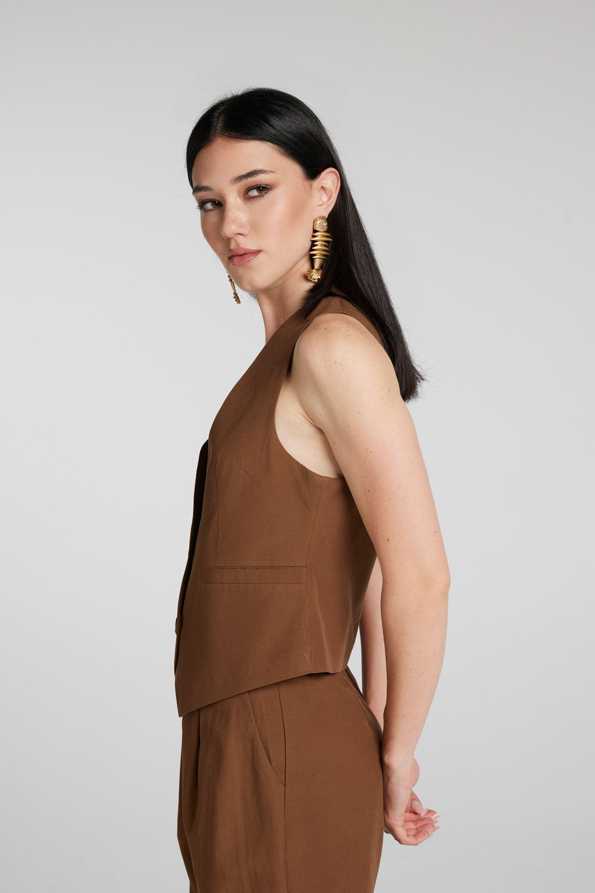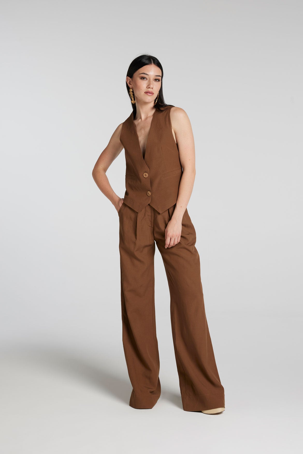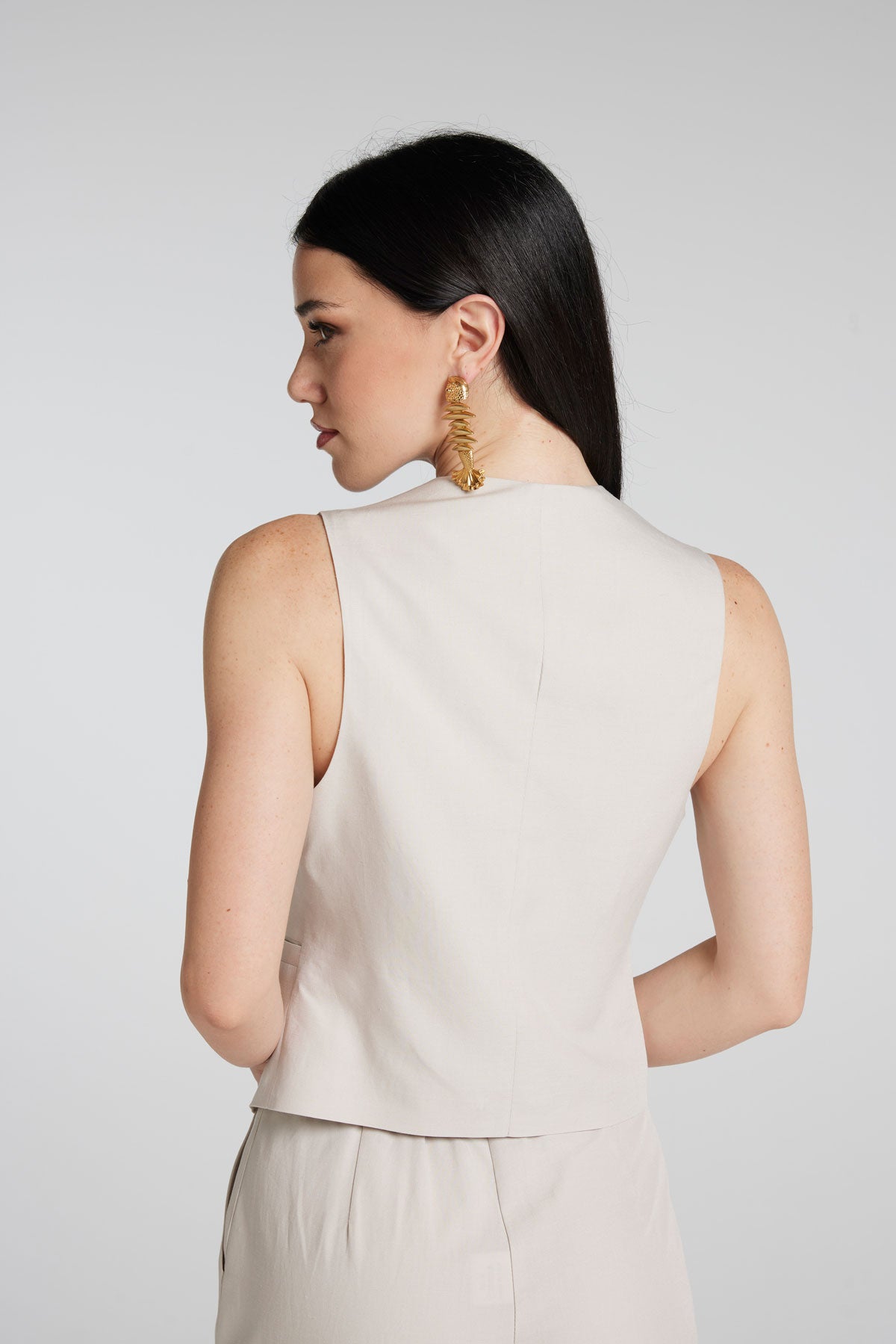 Gilet in Misto Lino (Viscosa/Lino) con bottoni in guscio di Noce di Cocco Naturale.